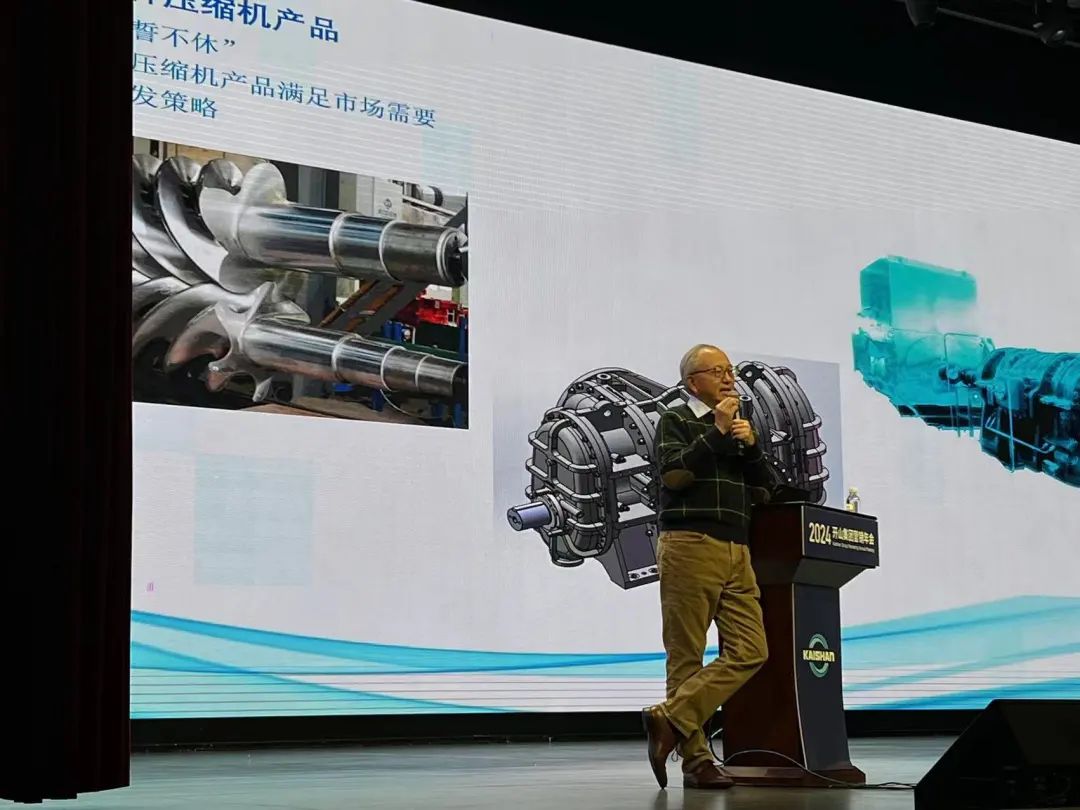 下午,壓(ya)軸(zhou)演(yan)講(jiang)是湯炎總(zong)經(jing)理所做的“開(kai)山(shan)技(ji)術發展與趨勢”專題報(bao)告(gao)。湯總(zong)的演(yan)講(jiang)報(bao)告(gao)精彩無比,贏得全(quan)場陣(zhen)陣(zhen)掌聲(sheng)。他著重介紹了(le)開(kai)山(shan)無油螺桿空(kong)壓(ya)機的創新(xin)技(ji)術特(te)征,介紹了(le)最新(xin)一代超(chao)高(gao)(gao)效(xiao)(xiao)(xiao)壓(ya)縮機的測試數據,他宣布,即將在(zai)2024年全(quan)面推出的新(xin)一代超(chao)高(gao)(gao)能(neng)效(xiao)(xiao)(xiao)空(kong)壓(ya)機比國家最新(xin)頒布的一級能(neng)效(xiao)(xiao)(xiao)比功率數值(zhi)還要(yao)低7.9-11.4%,“開(kai)山(shan)將再次改寫中(zhong)國的能(neng)效(xiao)(xiao)(xiao)等級”!