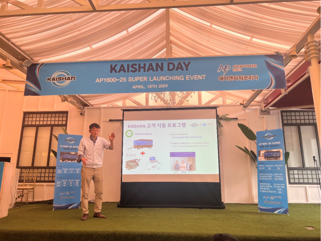 A&P公司總經(jing)理Mr.Koh Kwanhyun主持了活動,并專題報告、介紹了開山集團,向韓國(guo)客(ke)戶介(jie)紹了開山強大的(de)研(yan)發實力,說明了開山移動空(kong)氣壓縮機的(de)性能(neng)和技術特(te)點(dian)。來自(zi)基礎建設、樁(zhuang)基應用(yong)、地熱鉆井、水(shui)井(jing)鉆井(jing)、礦山市場的100余位客戶認真聆(ling)聽了Mr.Koh的講解。