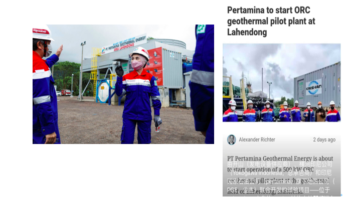 此次Lahendong實驗項(xiang)(xiang)目成功(gong)對PGE意義重大。此前,其CEO Nicke Widyawati女士(shi)訪(fang)問Lahendong地熱項(xiang)(xiang)目并表示公司計劃建(jian)設210兆瓦(wa)的有(you)機(ji)朗肯(ken)循環(huan)熱水發電項(xiang)(xiang)目。