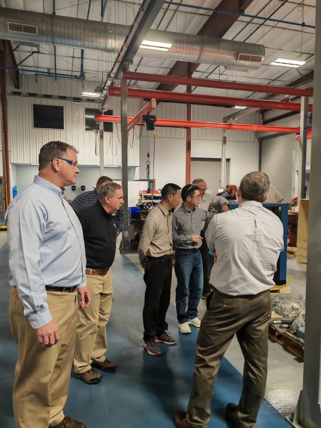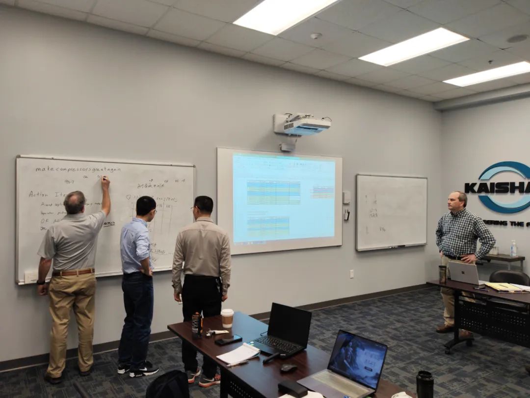 KCA總裁Keith先(xian)生和他的(de)同(tong)事們(men)熱情接待了(le)來自中國(guo)的(de)開(kai)山同(tong)事,中美兩個團隊就新(xin)產品(pin)開(kai)發(fa)、進(jin)一步(bu)提高運營效(xiao)率、進(jin)一步(bu)做好品(pin)管工作(zuo)等(deng)話(hua)題進(jin)行了(le)充(chong)分的(de)交(jiao)流,取得(de)了(le)良好的(de)成效(xiao)。開(kai)山團隊還與干式無油(you)螺(luo)(luo)桿(gan)(gan)空氣壓縮機(ji)研發(fa)中心工程師進(jin)行了(le)深入交(jiao)流,并(bing)參觀了(le)干式無油(you)螺(luo)(luo)桿(gan)(gan)空氣壓縮機(ji)生產線。