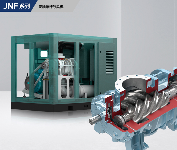 開山無油螺桿鼓風機,采用自有自主研發技術開發的高效螺桿 轉子型線,主機陰陽轉子依靠一對高精密度同步齒輪 嚙合運行,軸承與壓縮腔體之間進行密封。壓縮腔體 中無油,為客戶提供潔凈無油的空氣。